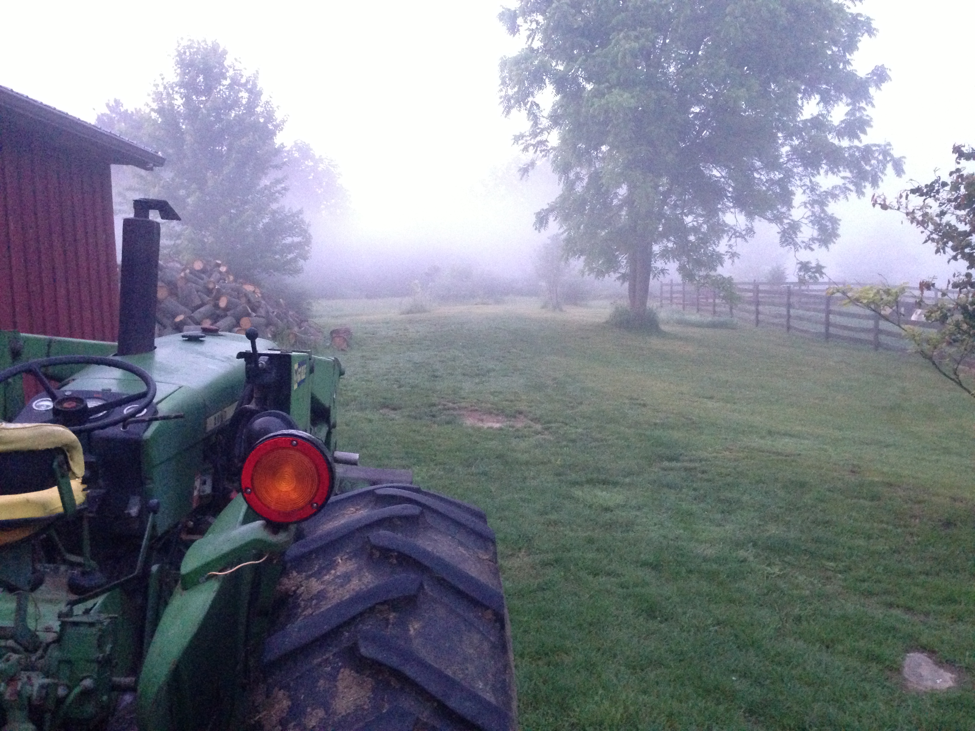 I exited into a heavy dawn air, thick with fog and mystery. The barnyard sat perfectly still, frozen, silent, like a postcard.  I tiptoed past quiet little stalls.  Seven goats, four bred ewes, and two head of cattle.  Everyone accounted for.  Everyone fine.